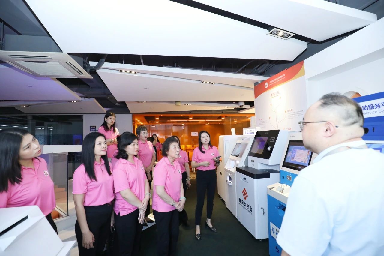 隨后,喬明明董事長帶領市女企協一行參觀走訪了創能科技公司,并詳細介紹了公司產品的特點與優勢。女企業家們觀看了新款“粵智助”政府服務自助機功能及演示,聽取了創能科技公司在社會治理、系統集成、智慧園區服務、產業園運營等方面的項目規劃和實踐成效。