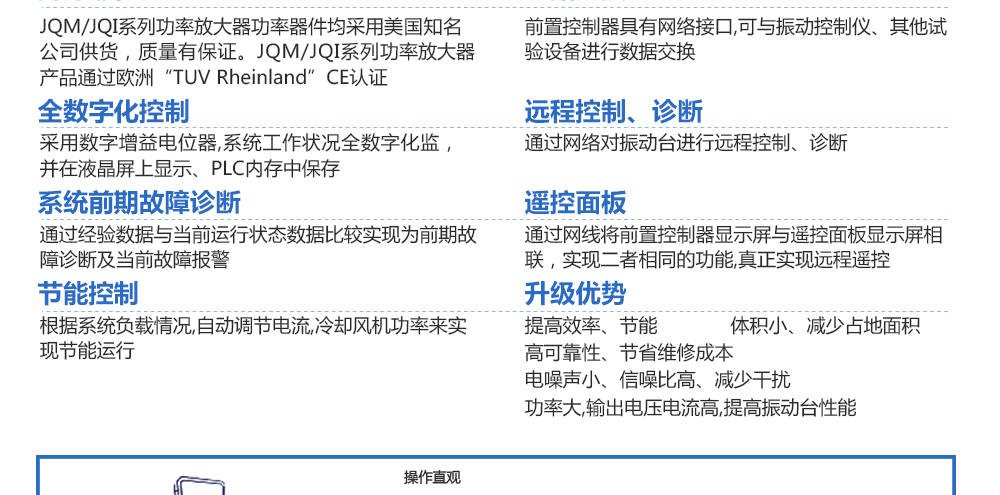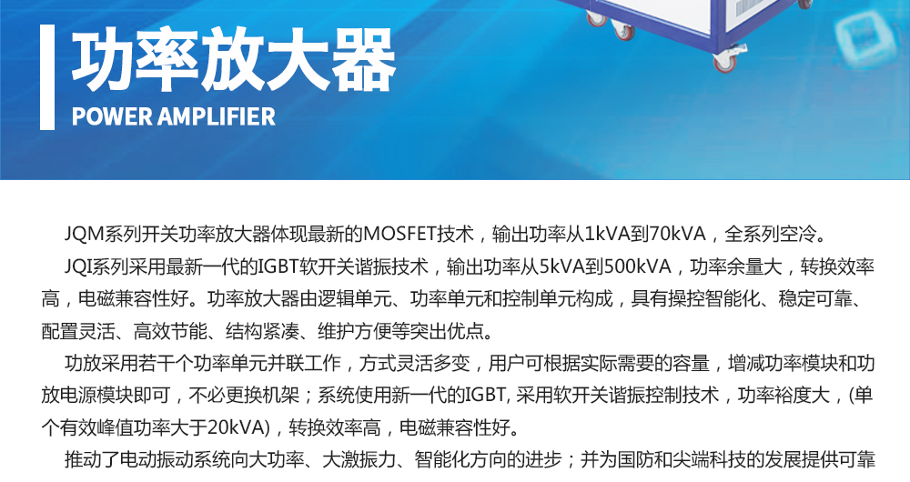 用途:功率放大器由邏輯單元、功率單元和控制單元構(gòu)成,具有操控智能化、穩(wěn)定可靠、配置靈活、高效節(jié)能、結(jié)構(gòu)緊湊、維護(hù)方便等突出優(yōu)點(diǎn)。